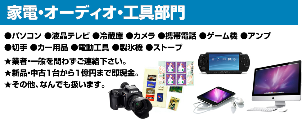 ネットを駆使しますので東京でも秋田でも同じです。その他 パソコン・カメラ等の電子機器も買取します。